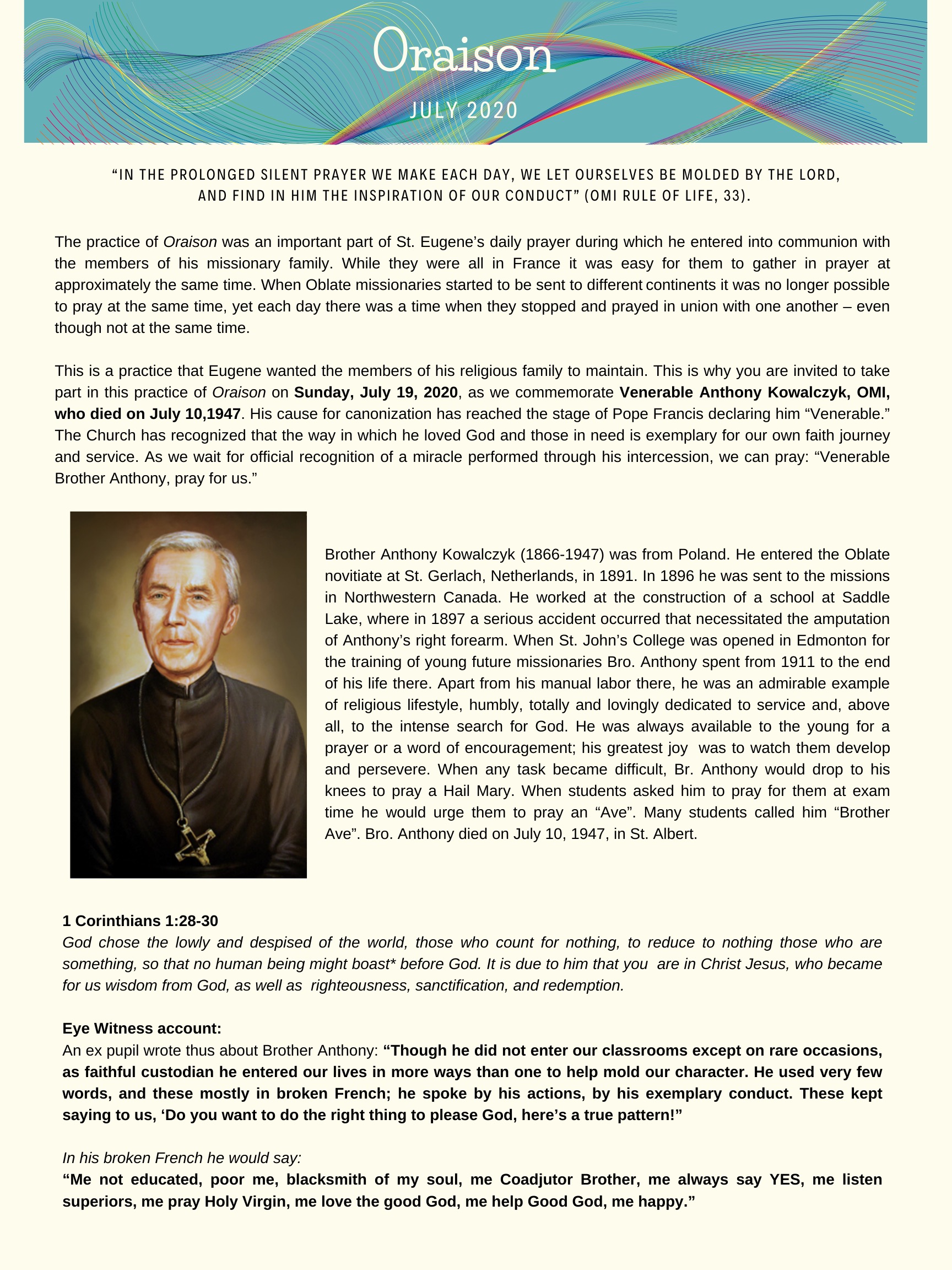 PRAYING WITH THE MAZENODIAN FAMILY: JULY 2020