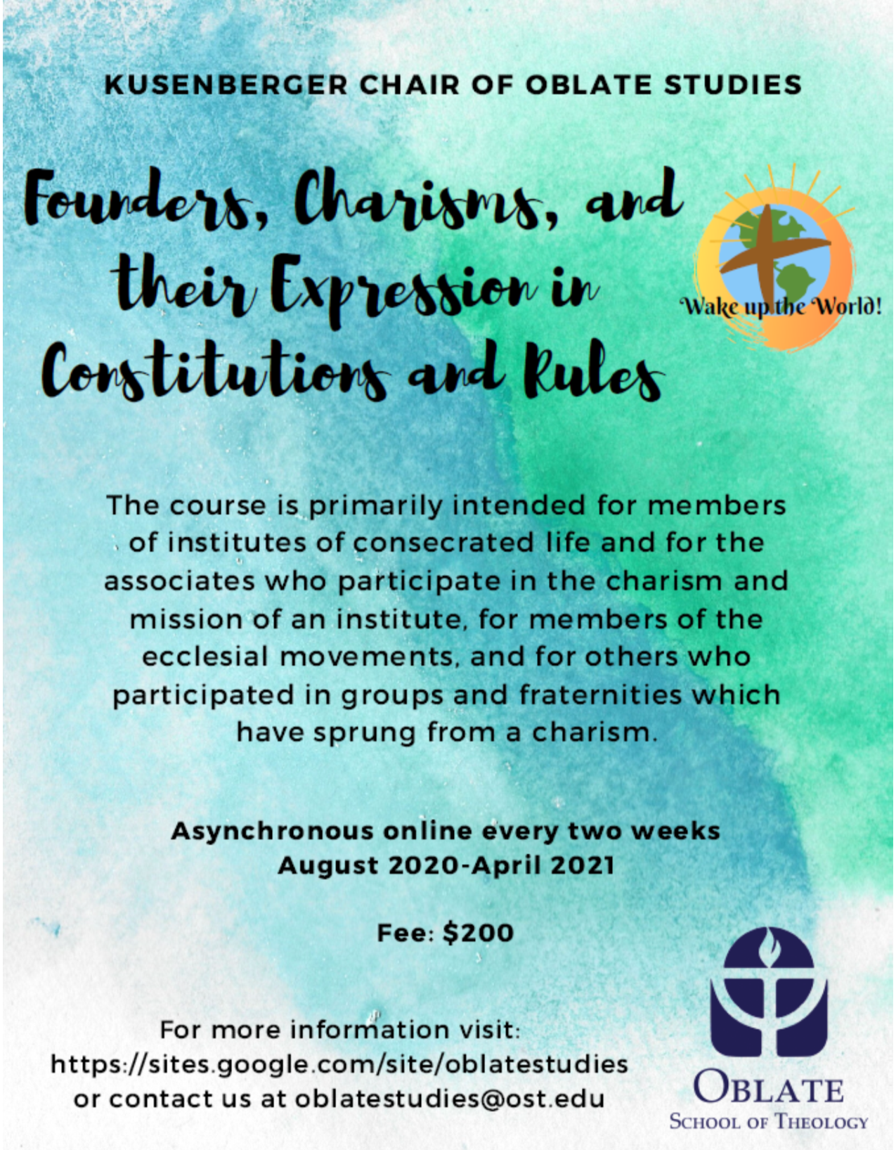 For further information see: https://sites.google.com/site/oblatestudies/an-invitation-to-all-institutes-of-consecrated-life-and-associates/course-syllabus