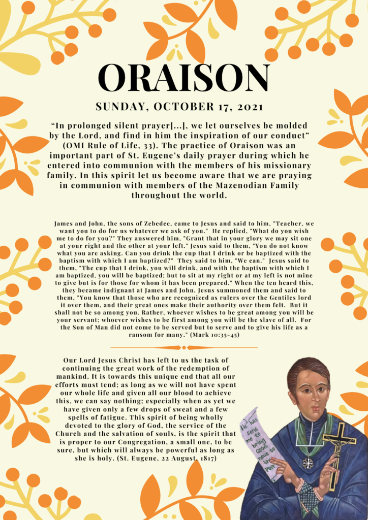 JOIN THE WORLDWIDE MAZENODIAN FAMILY FOR A MOMENT OF PRAYER