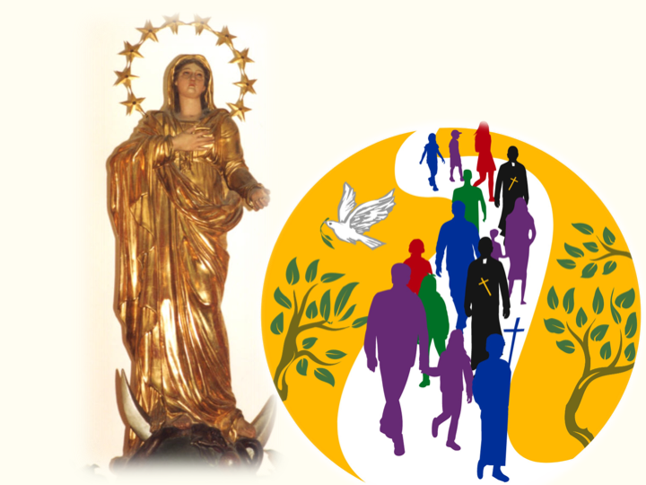 “What for Mary was a personal longing, she was able to personify for the poor ones. Her personal happiness, or being blessed, was transformed into vindicating or asserting rights for a whole people. In spite of suffering and oppression, she claimed that justice will come, that injustice will be righted.” This speaks directly to what the logo for the upcoming 37th General Chapter depicts: “Pilgrims, Hope and Communion.” Dear Eugene, this was what you began, the dream that you had and made real. I look at the placement of the logo, perfectly situated along side of Mary our Mother. I want almost to insert myself into the midst of that picture, and say yes I walk with you.