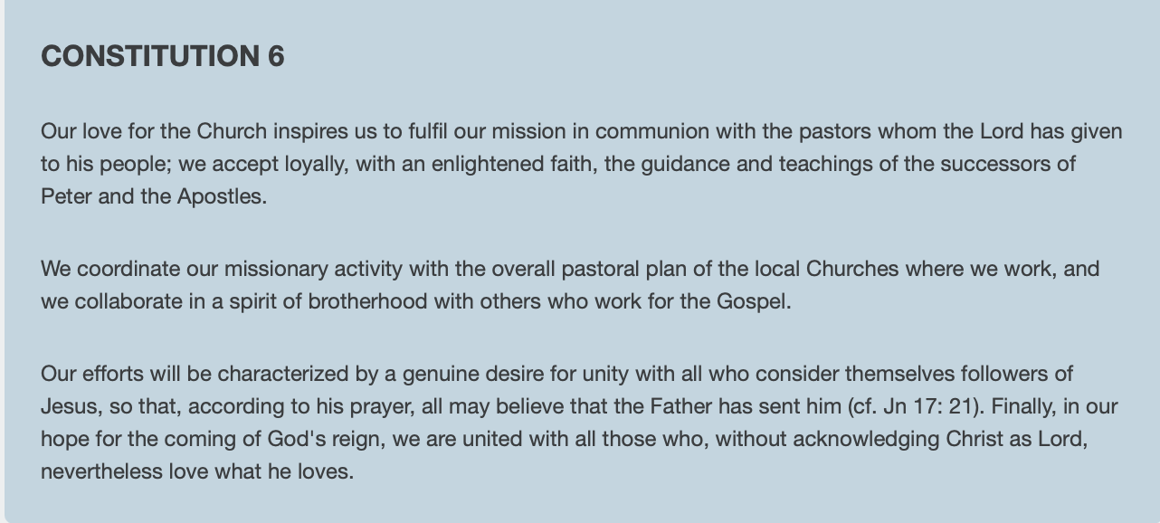 Action on behalf of justice, peace and the integrity of creation is an integral part of evangelization. (Rule 9a)