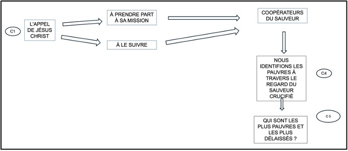 Avant de commencer à explorer notre mission, je vous invite à revenir sur nos réflexions de ces derniers jours (à partir de http://www.eugenedemazenod.net/fra/?p=4964 ) et à réfléchir à la manière de vivre ces éléments clés dans le diagramme ci-dessus.