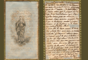 Après la mort d’Eugène en 1861, une carte à l’effigie de Marie a été trouvée dans son bréviaire. À l’endos, il avait écrit: